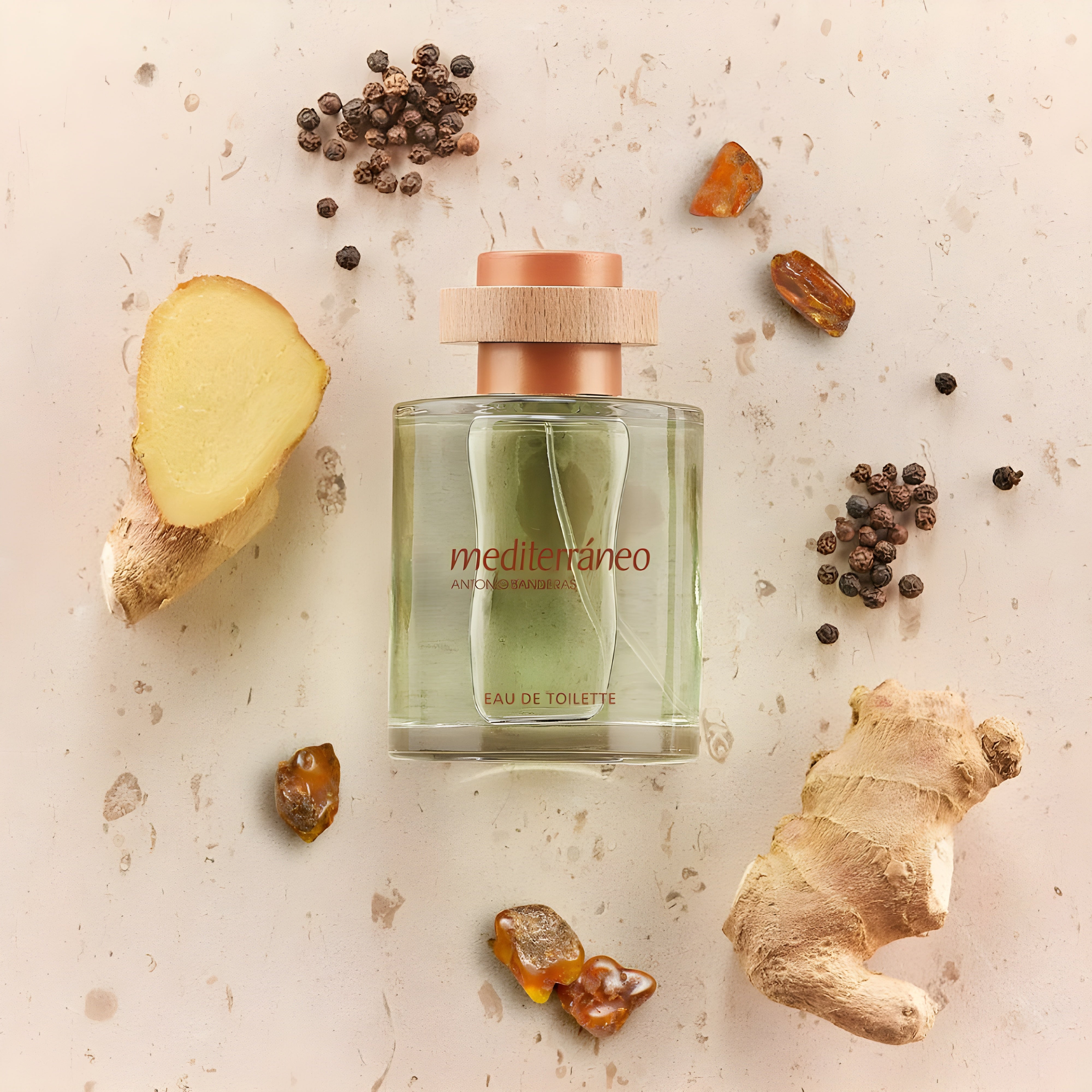 Antonio Banderas Mediterraneo EDT has a fresh, spicy scent with deep, earthy wood tones, capturing the essence of the Mediterranean Sea.