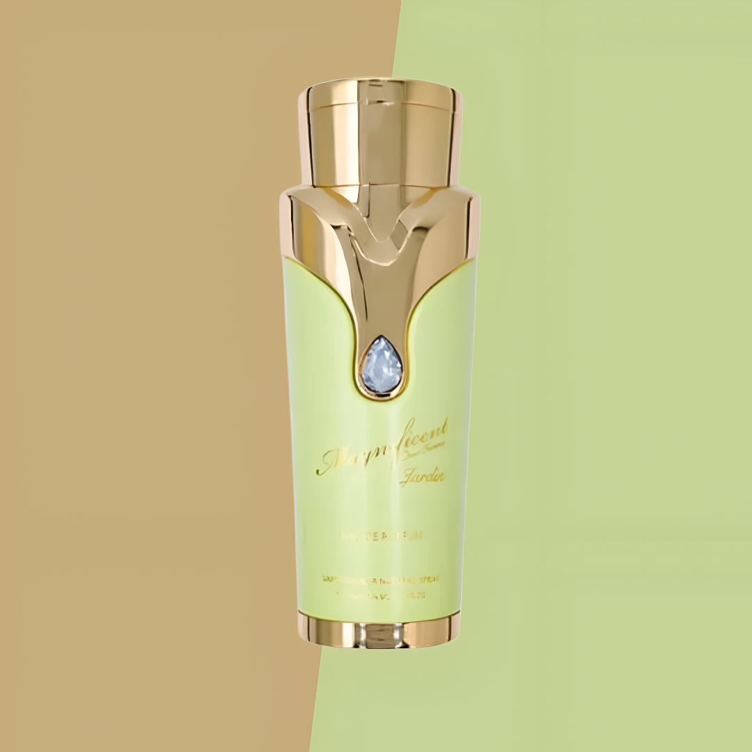 Armaf Magnificent Jardin EDP smells like a beautiful mix of fresh flowers, citrus, and green notes, creating a captivating and long-lasting fragrance that feels elegant and enchanting.