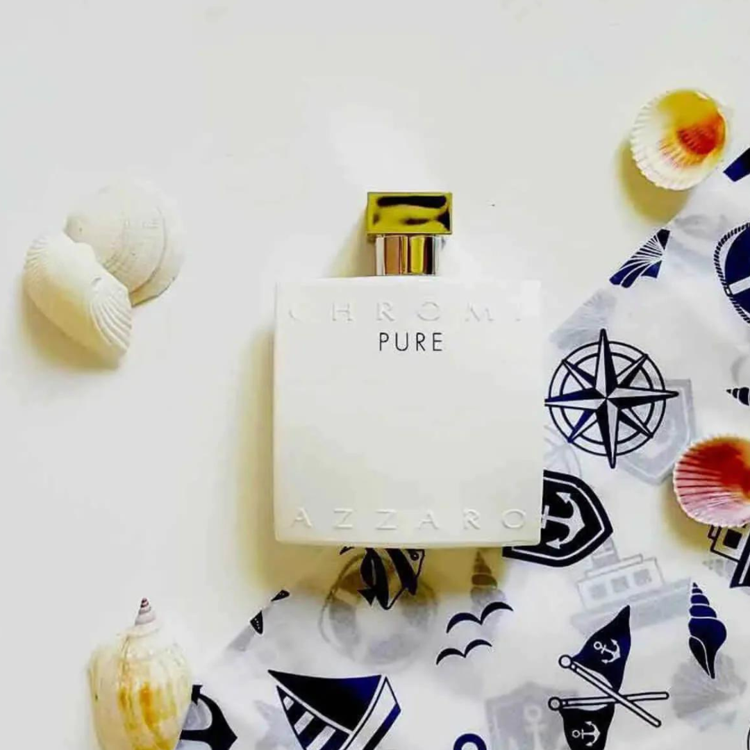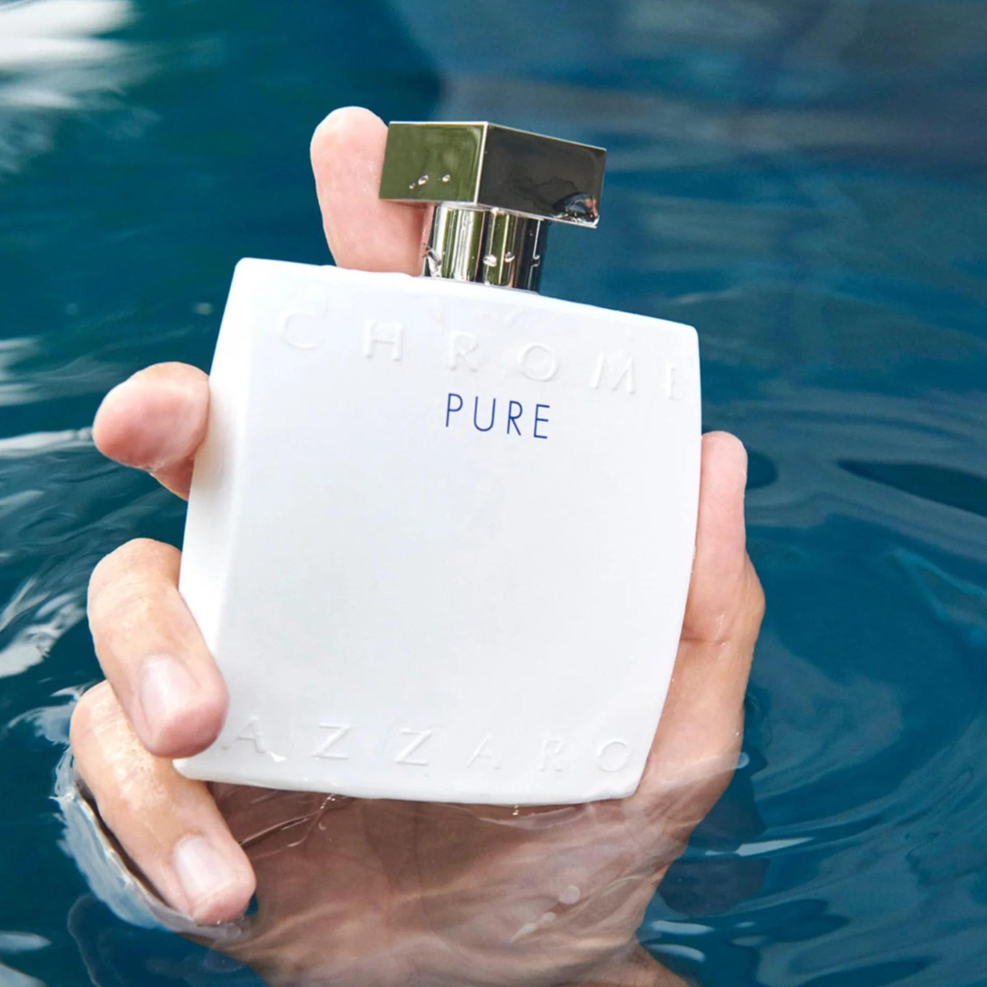 Azzaro Chrome Pure EDT has a fresh, vibrant scent with a hint of the Mediterranean Sea, embodying the joy and purity of life's simple pleasures.