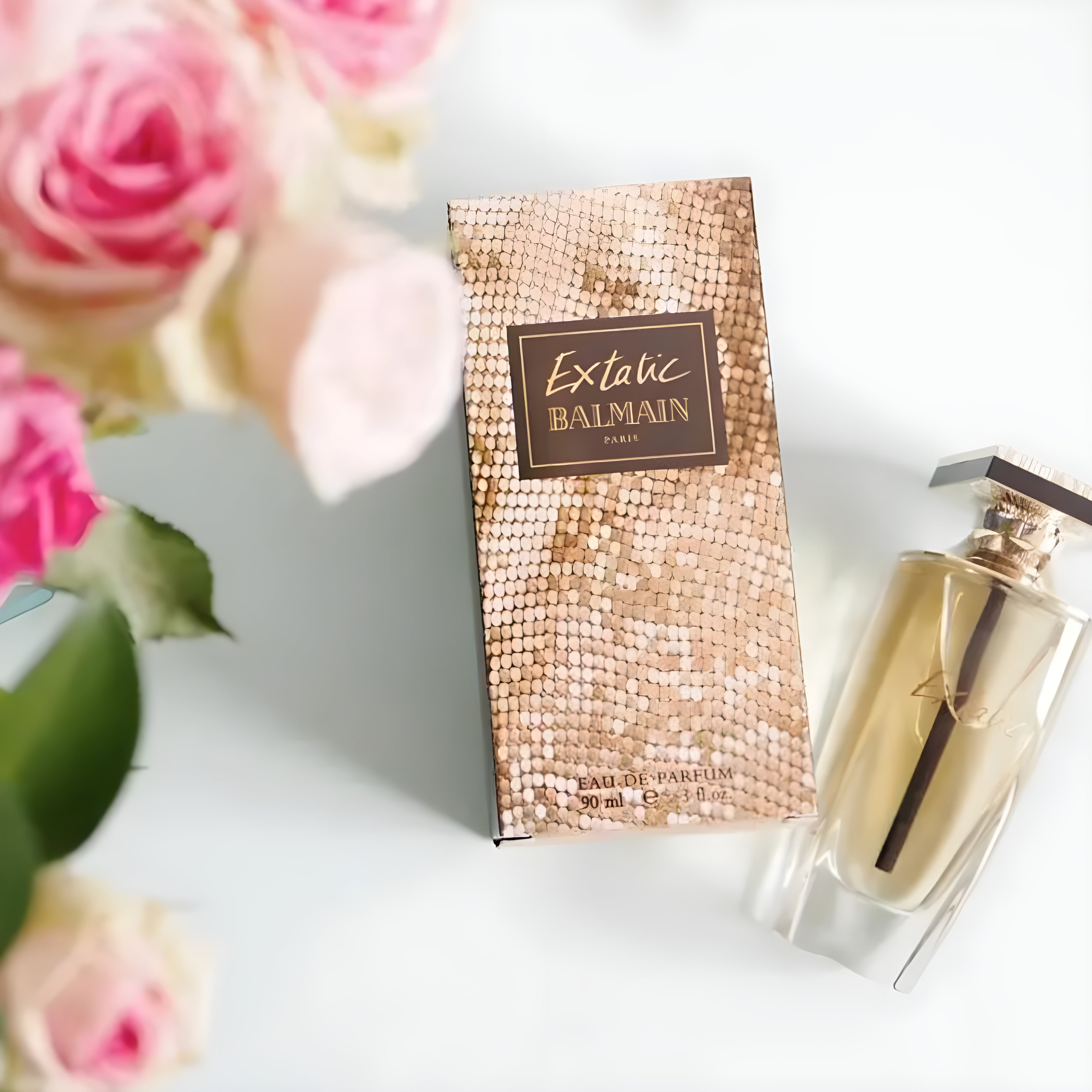 Balmain Extatic EDP has an oriental-floral scent with notes of jasmine, amber, and musk.
