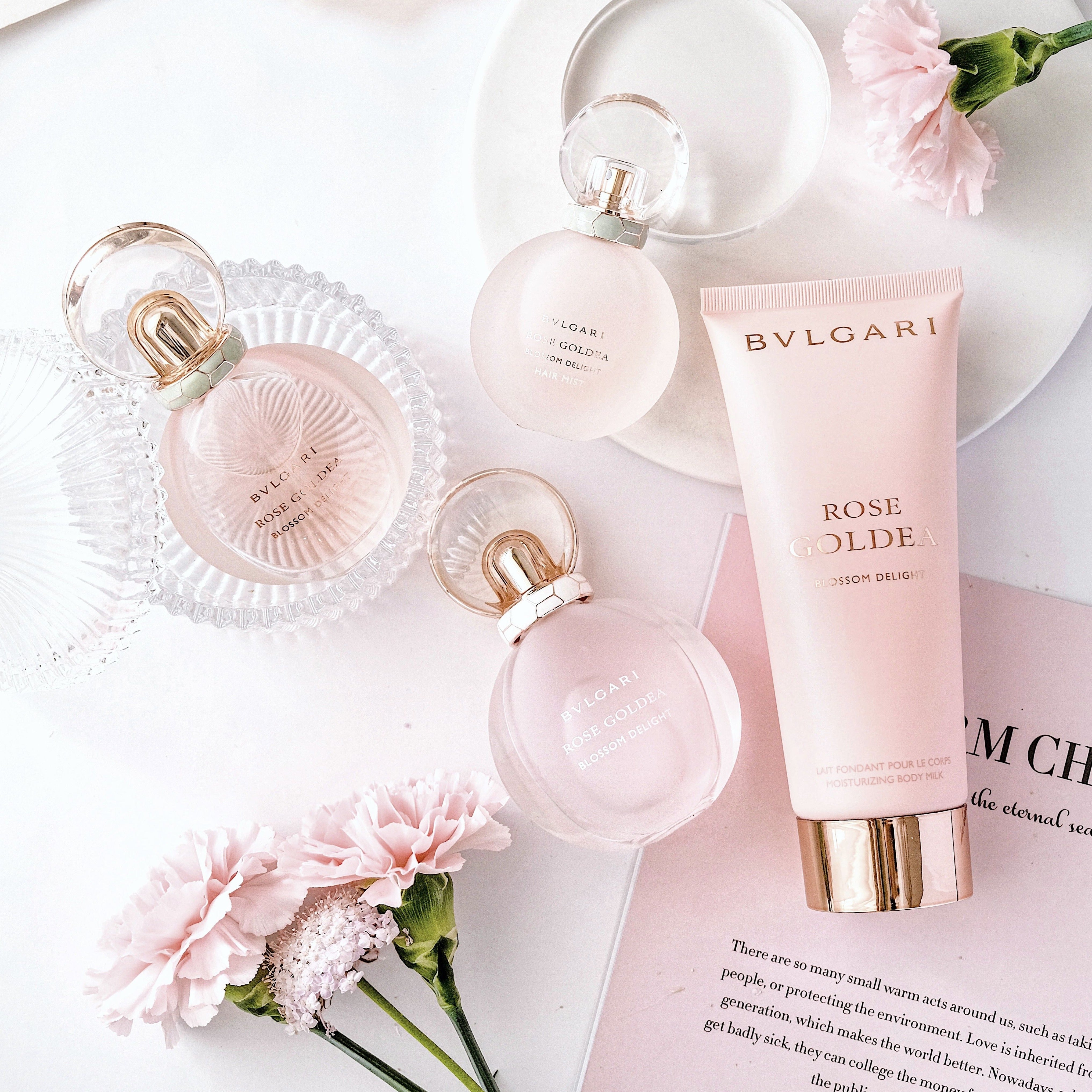 Bvlgari Rose Goldea Blossom Delight Moisturizing Body Milk smells like a fresh, modern rose garden, with hints of silky rose petals.