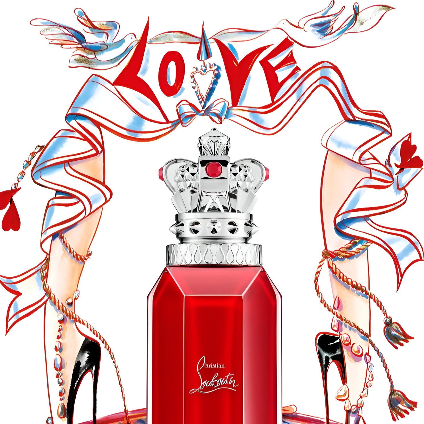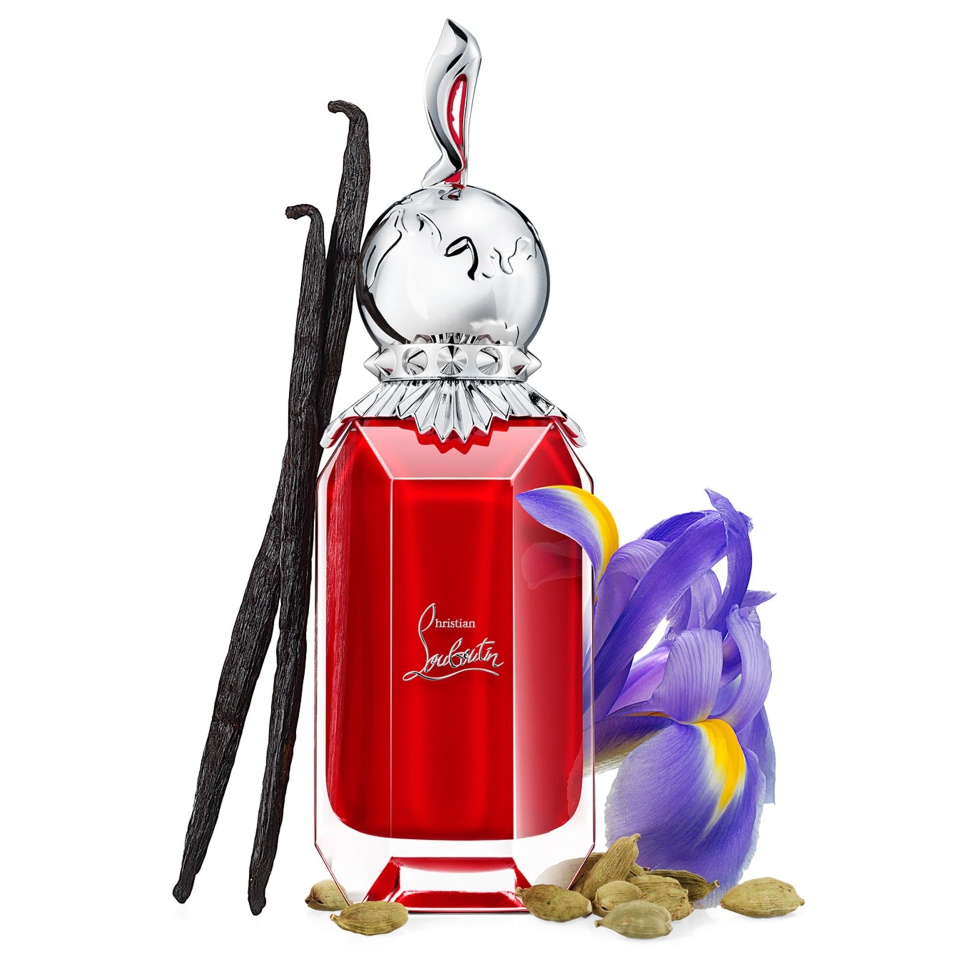 Christian Louboutin Loubirouge EDP has a spicy scent with warm cardamom, luxurious iris, and sweet vanilla notes, reminiscent of Parisian cabaret.