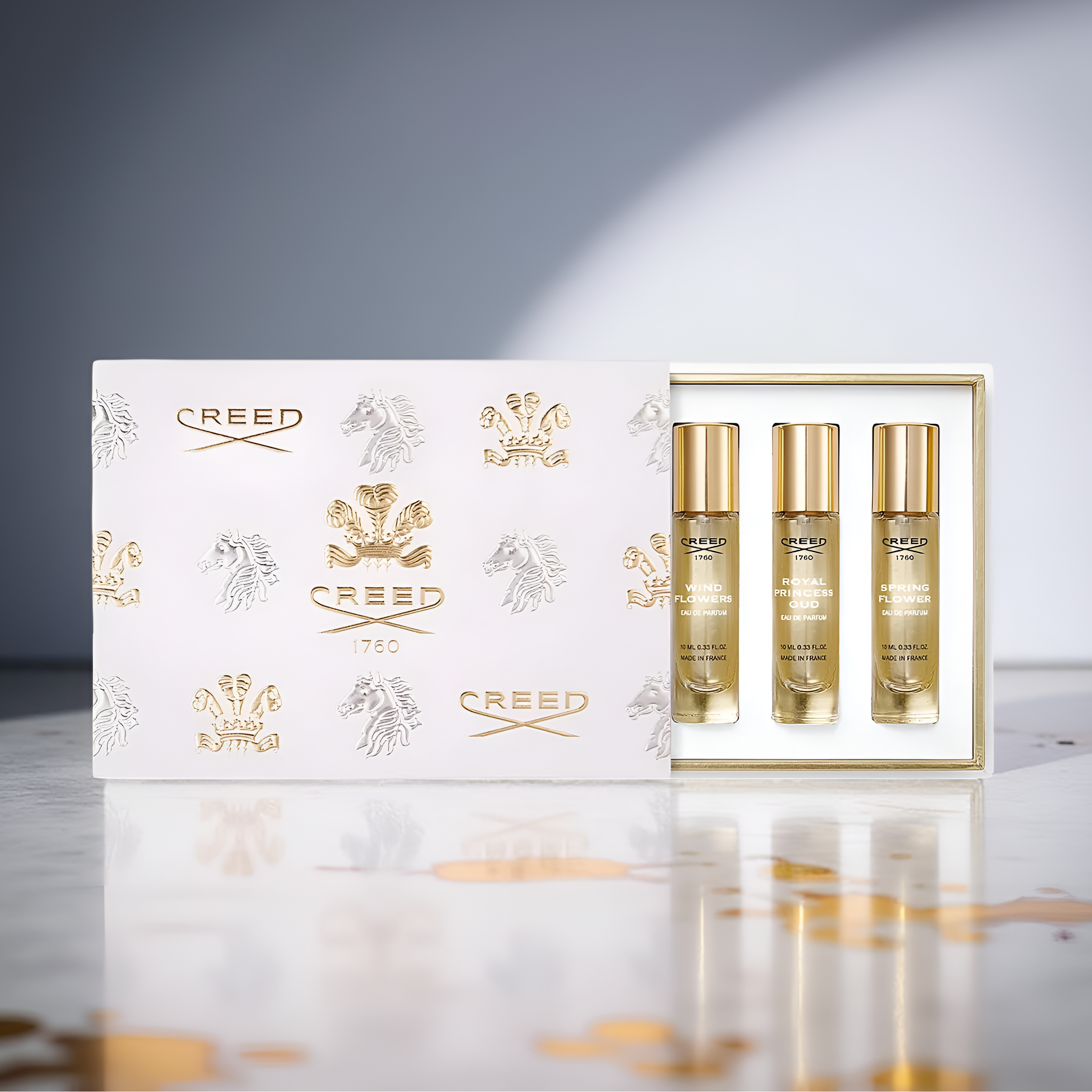 Sprays are sealed and non-refillable to preserve fragrance integrity. An elegant sampler for gifting or discovering Creed's signature styles.