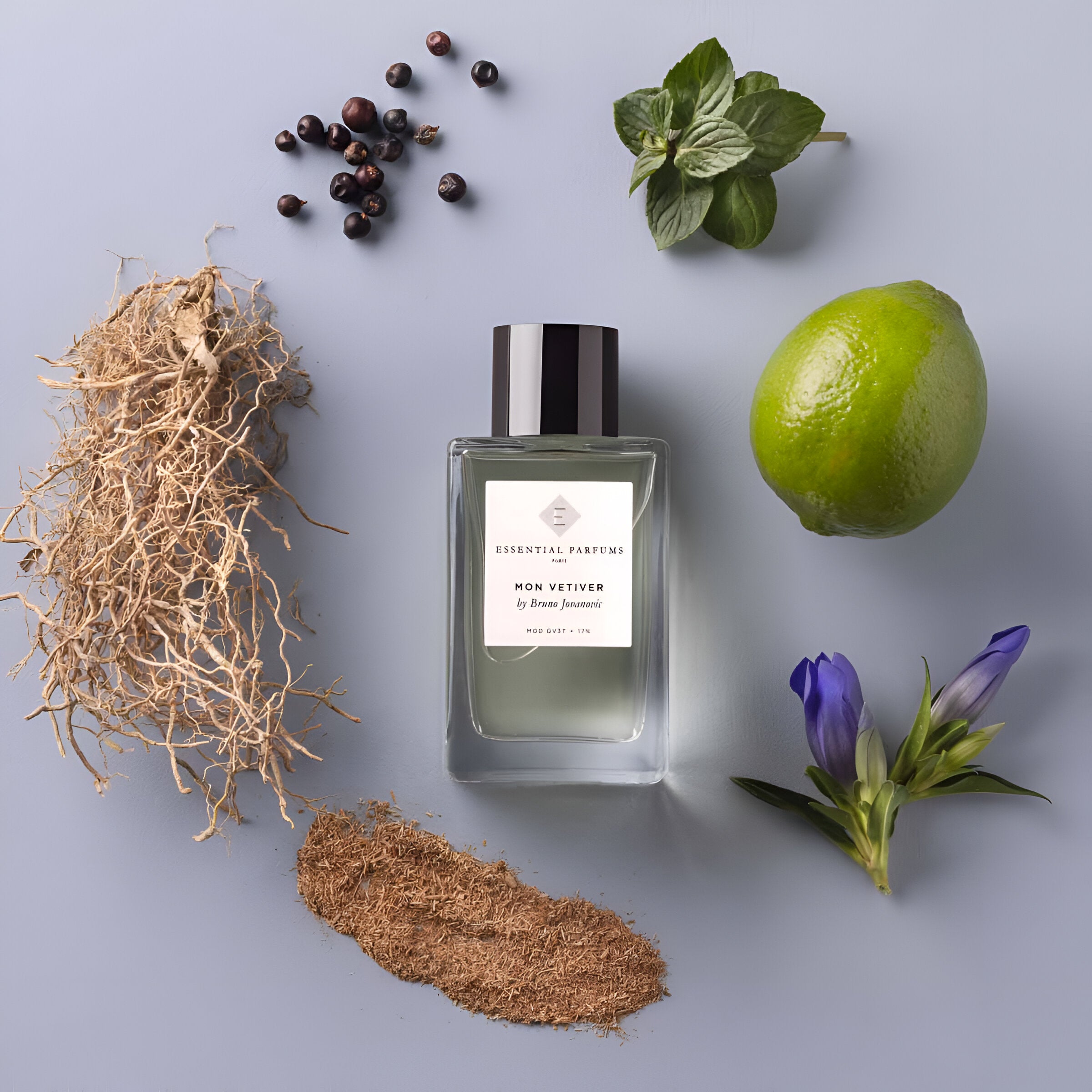 Essential Parfums Mon Vetiver EDP features an earthy, woody aroma with a unique cedarwood note, inspired by Haitian vetiver.
