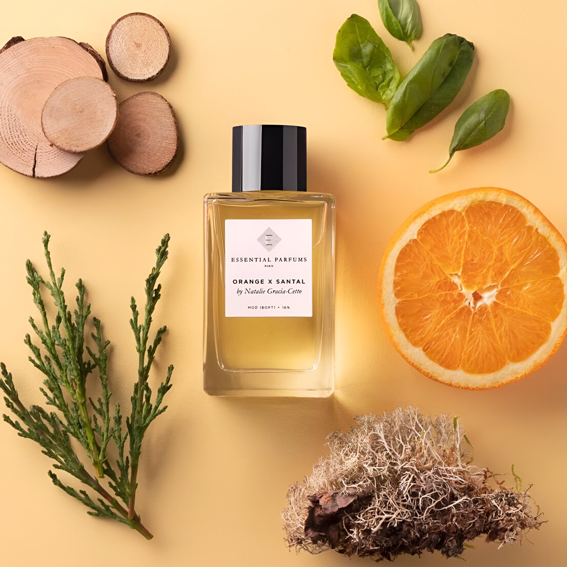 Essential Parfums Orange X Santal EDP smells like a captivating mix of bright Italian orange and rich Australian sandalwood, creating a sensual and mysterious aroma that evokes a sunny day in the south of France.