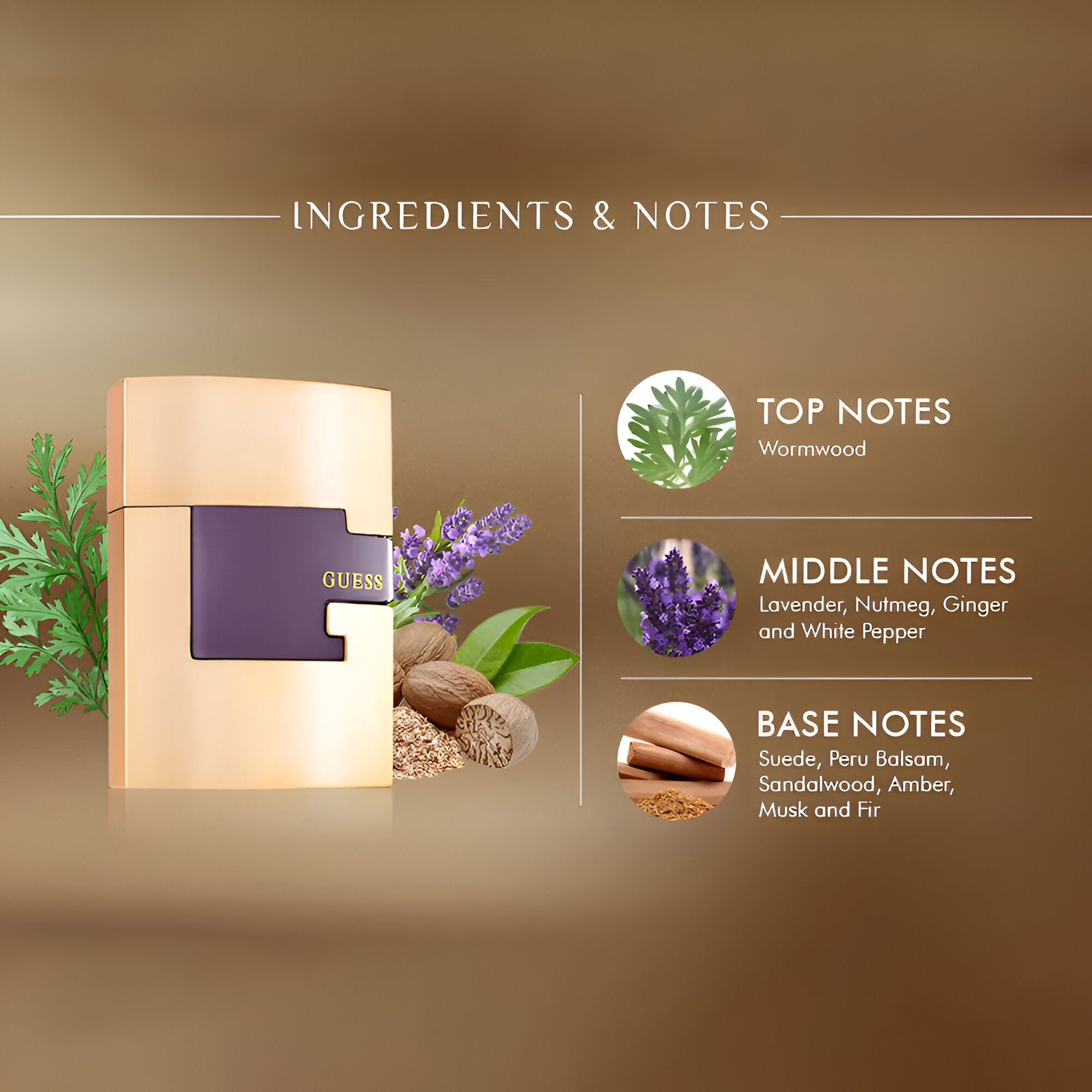- Base notes include lavender, woods, and ginger