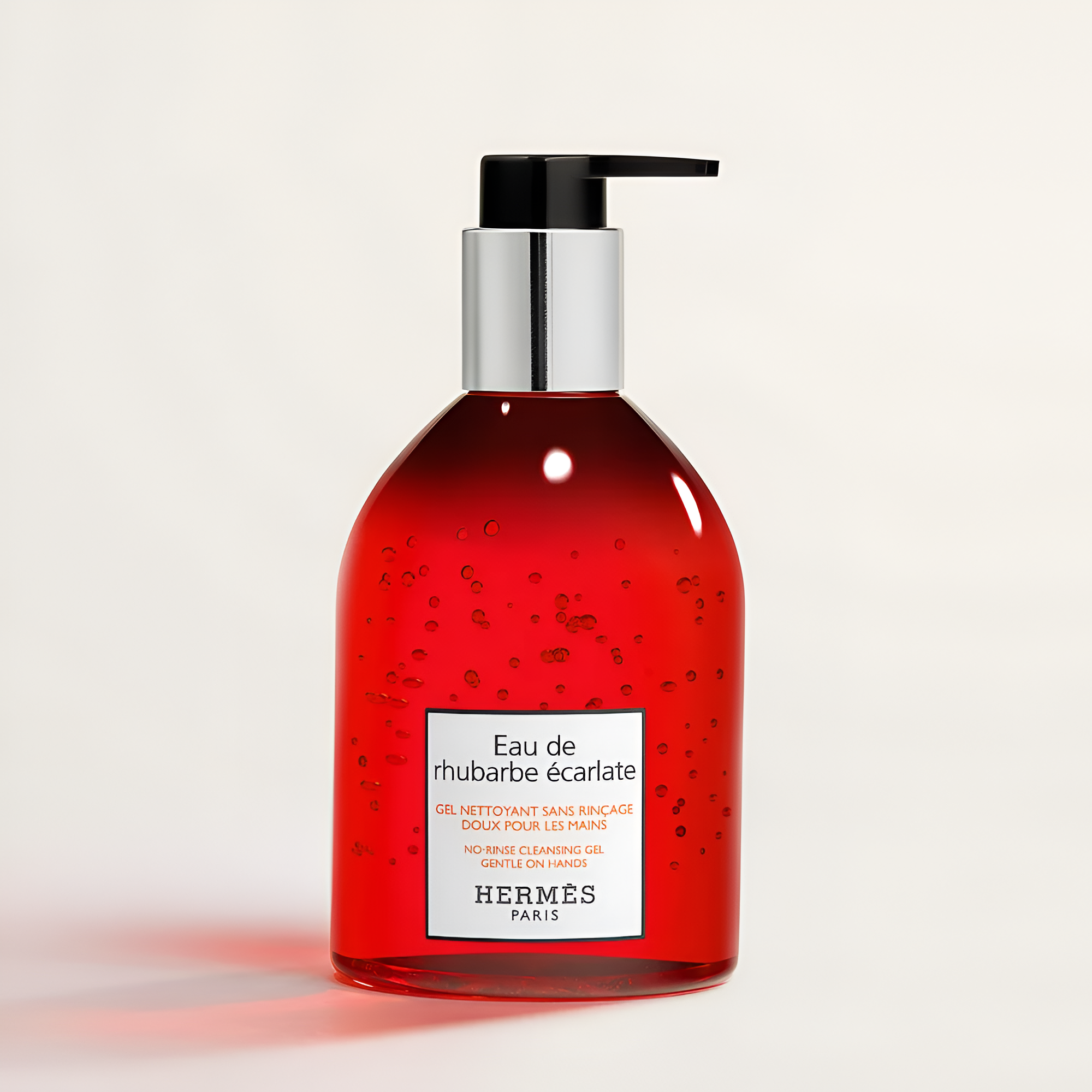 The Hermès Eau De Rhubarbe Ecarlate Hand And Body Cleansing Gel has a crisp, fruity scent that's like a fresh rhubarb adventure for your senses.