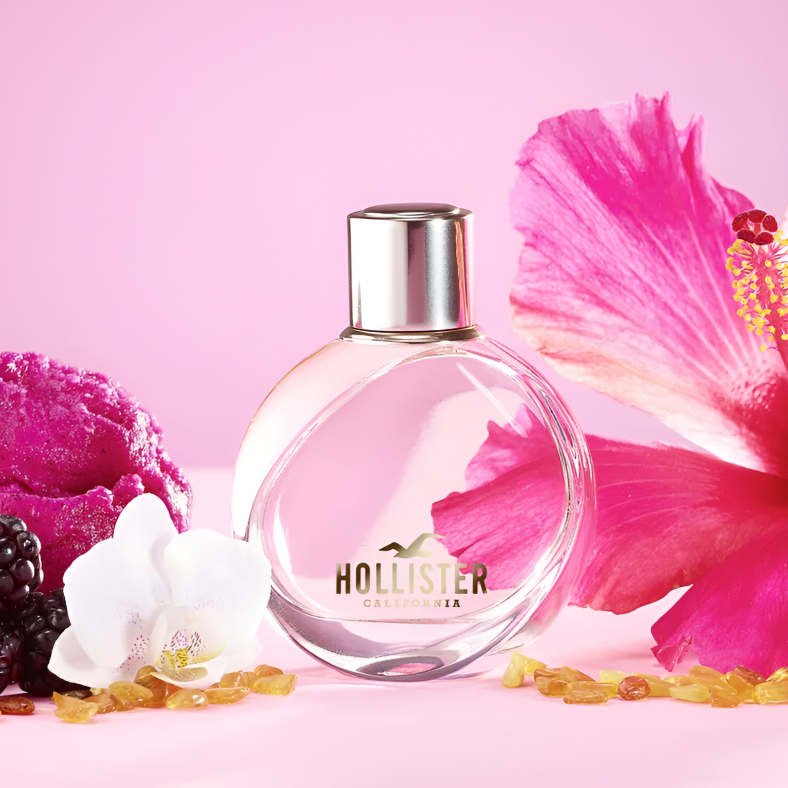 Hollister Free Wave For Her EDP has a fruity-chypre scent with hints of mandarin, blackberry, and agave, complemented by woody-spicy notes of ginger and pink pepper.