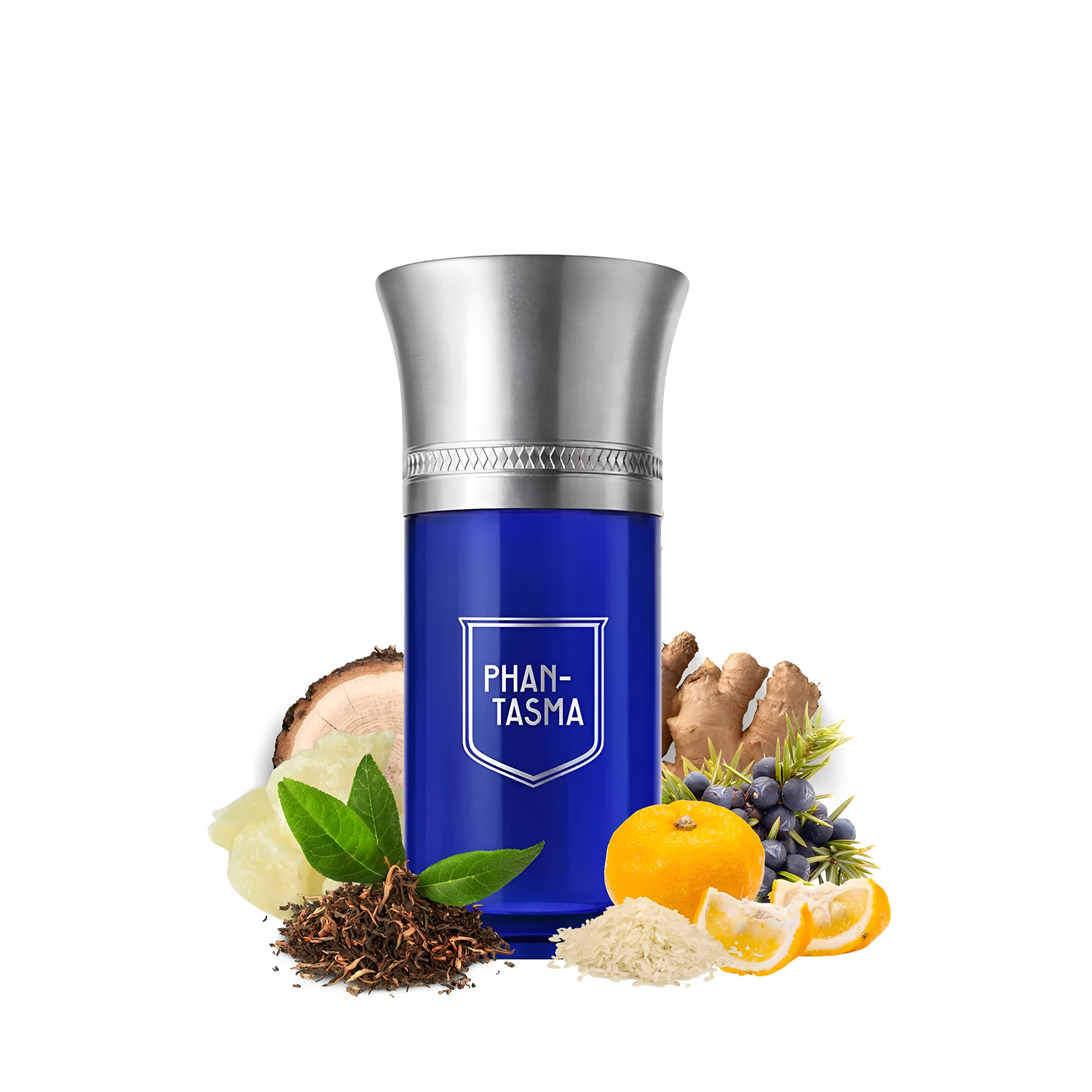 Liquides Imaginaires Phantasma smells like a mysterious, seductive mix of fresh citrusy yuzu and smoky black tea softened by powdery rice, with spicy ginger and crisp juniper adding warmth and sparkle.
