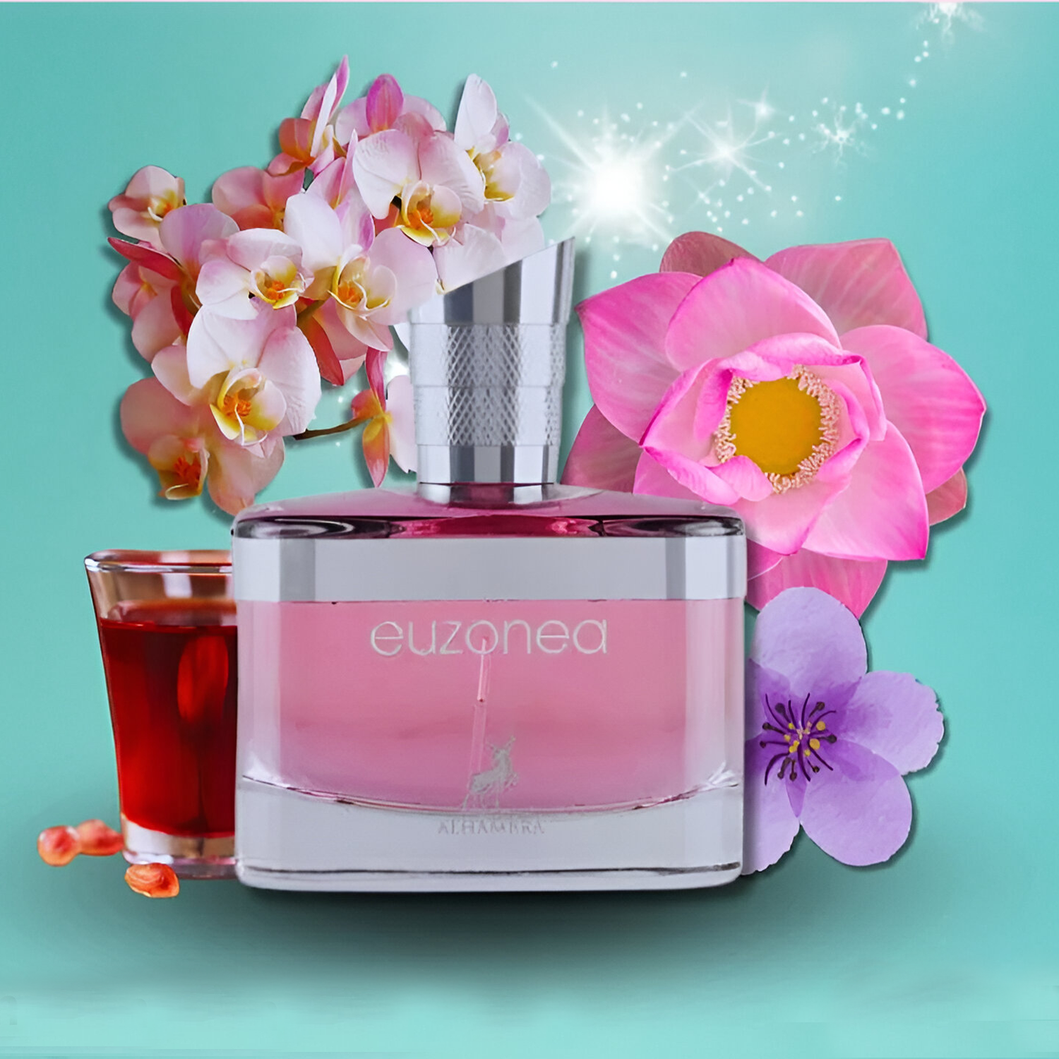 Maison Alhambra Euzonea EDP smells like a luxurious blend of exotic flowers and luscious fruits, combined with spicy and woody notes, creating a rich and unforgettable fragrance that captivates the senses.