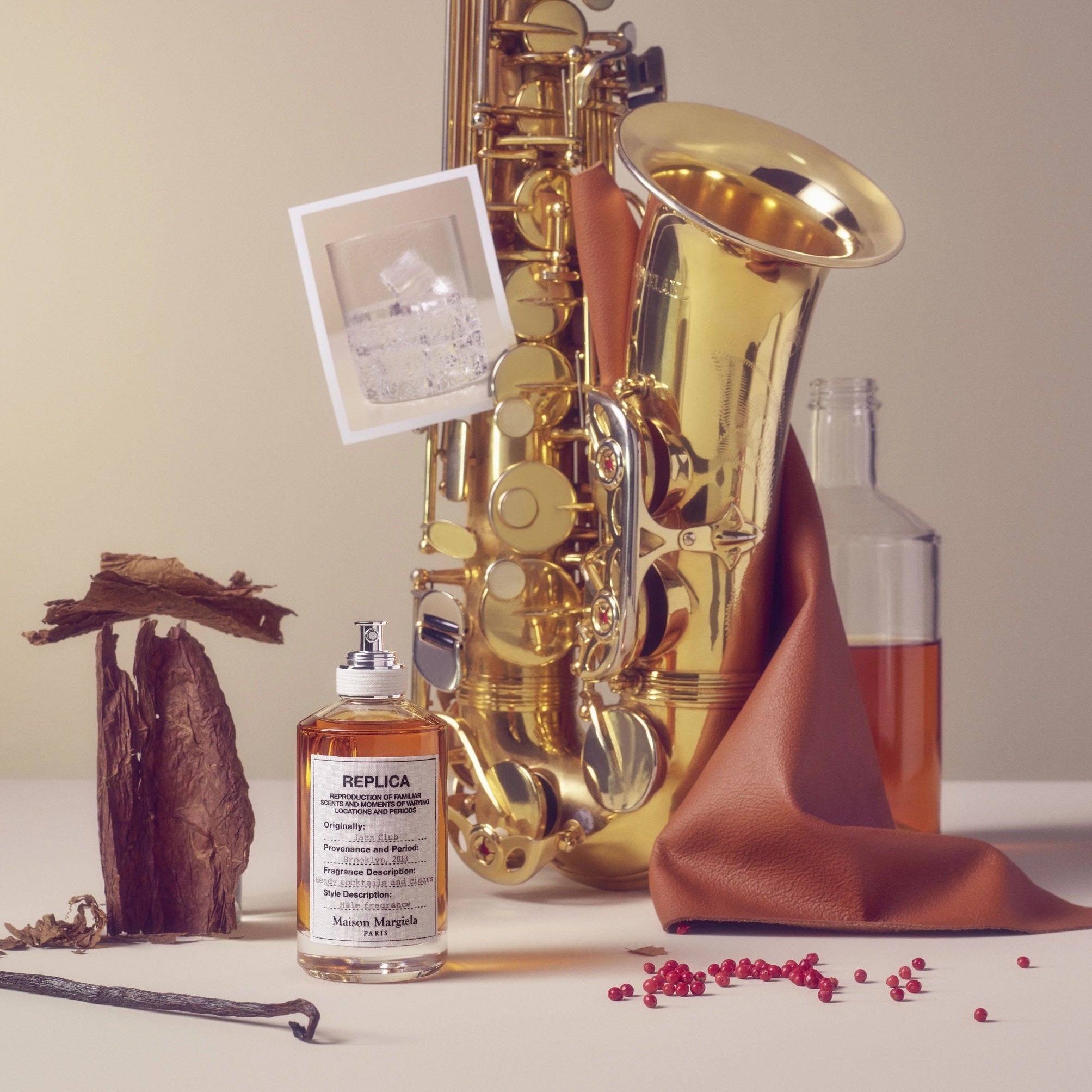 Maison Margiela 'Replica' Jazz Club EDT smells of smoky tobacco, sweet vanilla, and spicy pink pepper with hints of rum and leather.