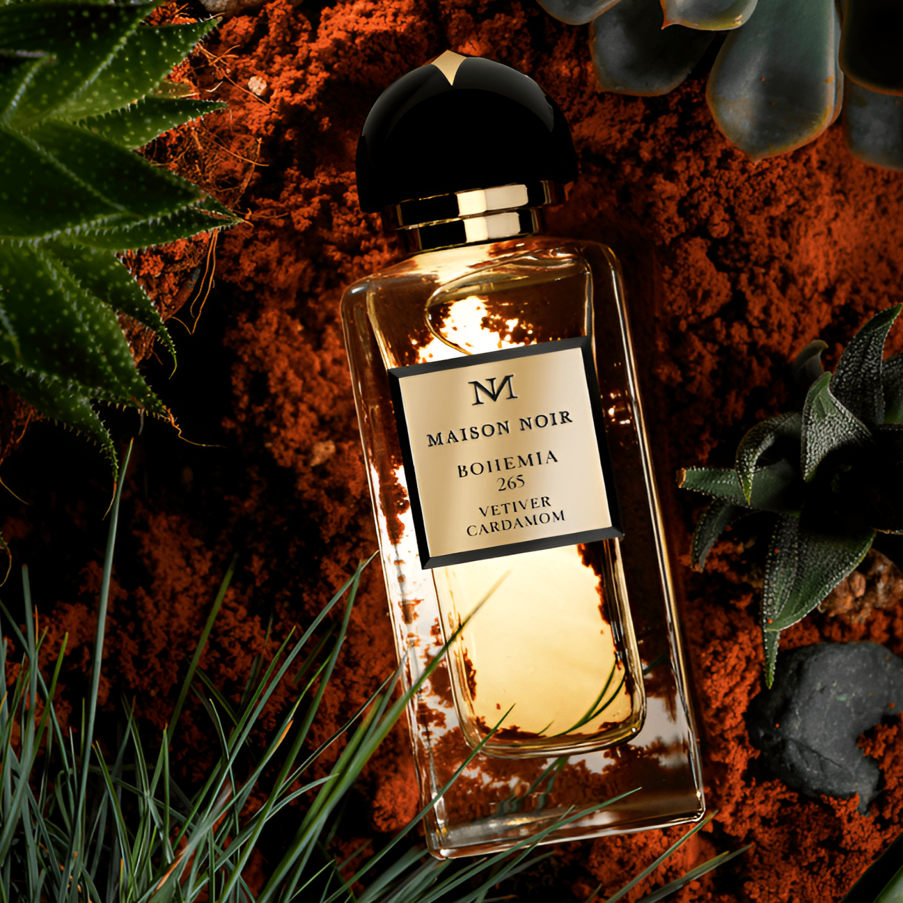 Maison Noir Bohemia 265 EDP exudes a bold Amber Woody scent that combines spices, herbs, and sensual woods, perfect for anyone seeking a contemporary, gender-neutral fragrance that captures the spirit of freedom and bohemian sophistication.