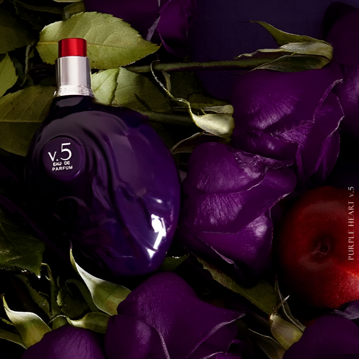 - Heart notes of intense violet and purple rose.