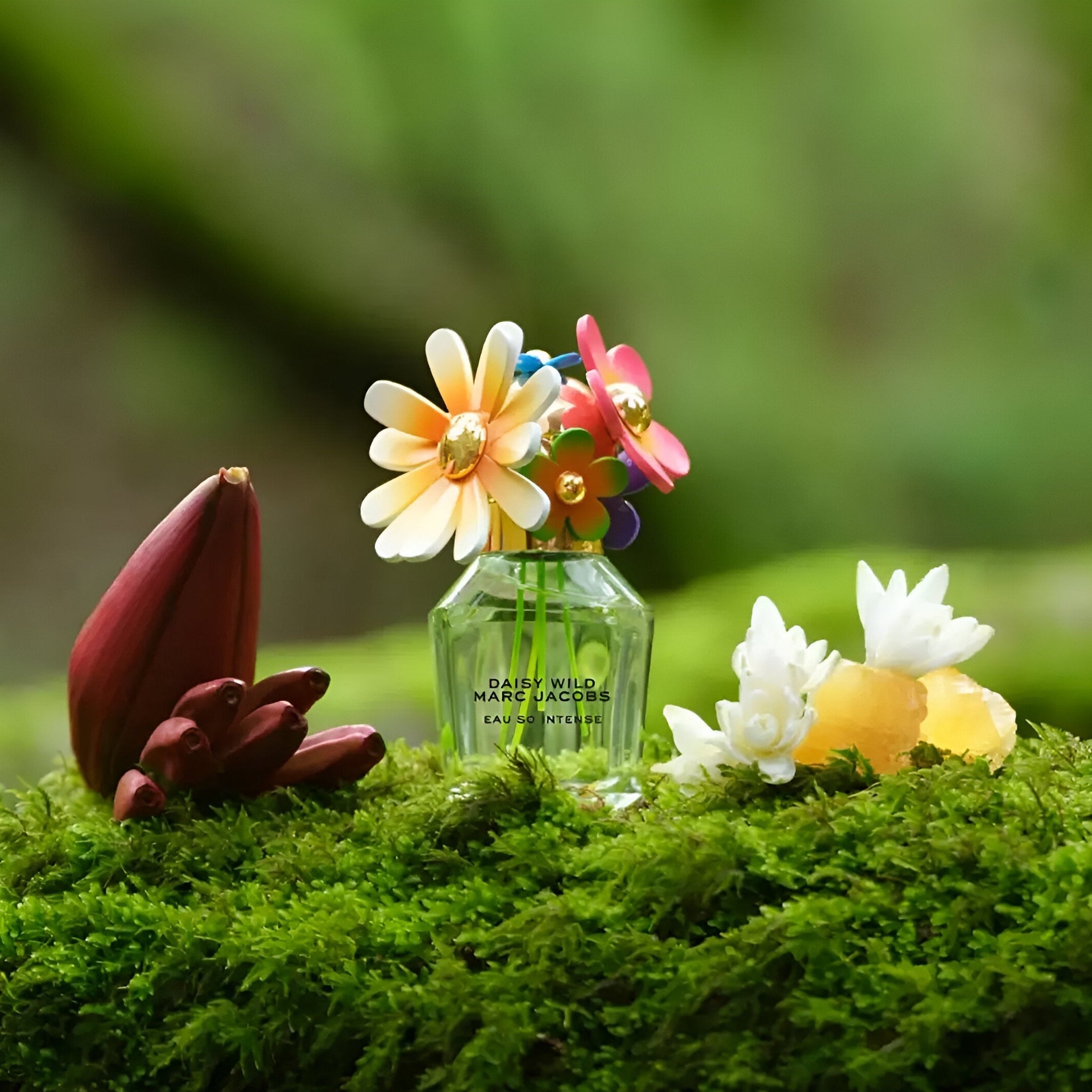Marc Jacobs Daisy Wild Eau So Intense smells like a bold, floral blend of creamy banana blossom, rich jasmine and tuberose, warmed by amber and smooth sandalwood for a vibrant, slightly woody, and surprising scent.