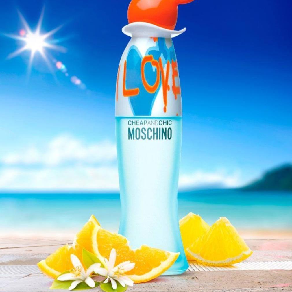 Moschino I Love Love EDT smells like a vibrant, citrusy burst of fruity and fresh notes, evoking the joy of sunny, carefree days.