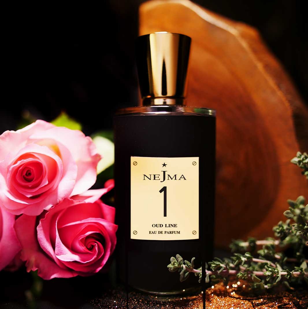 Nejma Collection 1 Oud Line EDP smells like a luxurious blend of warm saffron, rich rose, and deep oud wood, creating an enchanting and timeless aroma.
