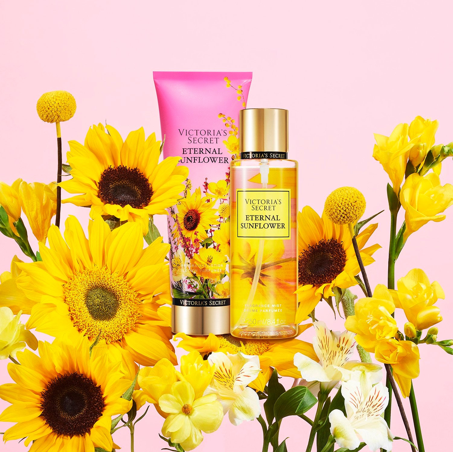 Ignite your senses with Victoria's Secret Eternal Sunflower Body Mist, a fragrance that captures the essence of a sun-drenched garden.