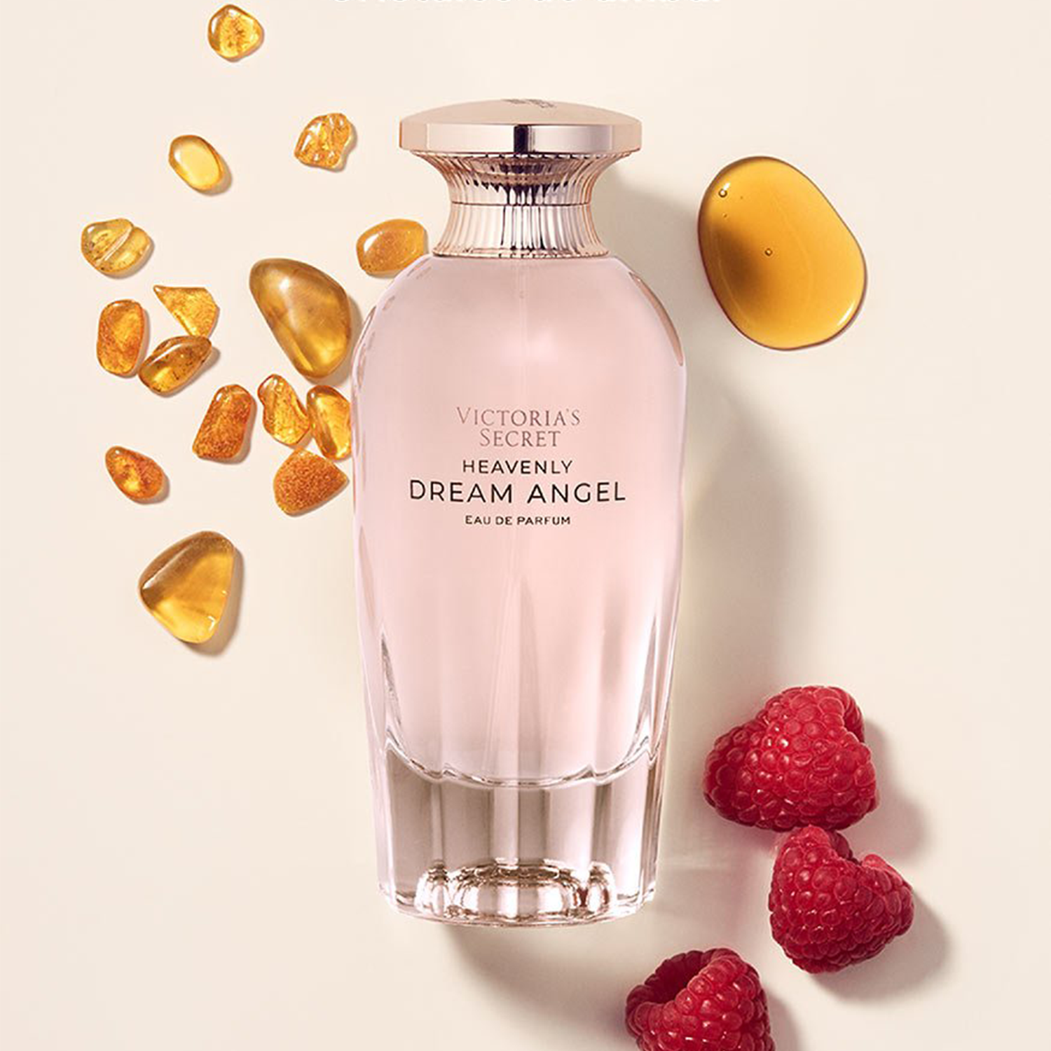 Victoria's Secret Heavenly Dream Angel EDP smells bright and uplifting with a sweet blend of raspberry nectar and soft musk, finished with warm amber crystals, making it perfect for any occasion.